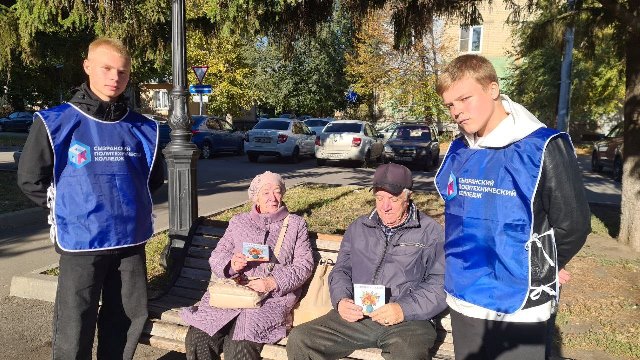 Кроме того, мы провели Акцию «Сопровождаем с любовью», в которой наши волонтеры помогали пожилым людям безопасно переходить дорогу, дойти до магазина или больницы, а также студенты подарили небольшие открытки в честь праздника пожилых людей.